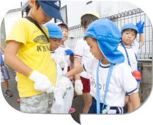 環境にいいことを子どもたち自身が考えて、楽しみながら実践しています。地域のゴミ拾いや資源回収、野菜の栽培、鳥の観察など多様な活動に参加しています。