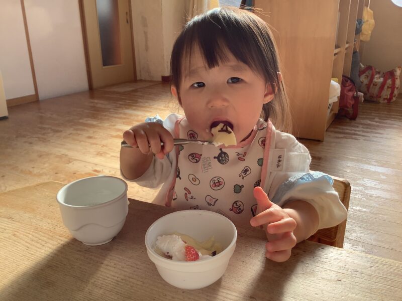 ミルクから離乳食、そして今では普通食へと進み、1人でも上手に食べられるようになってきました。しっかり食べることで体力がつき、ぐんぐん成長していきます。