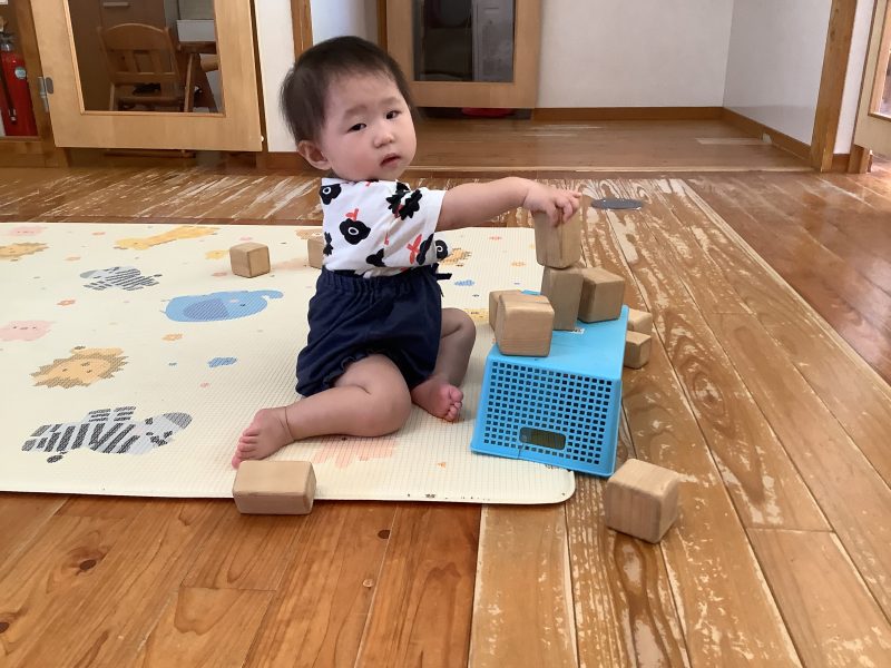 『静』の活動である積み木あそびでは、集中して高く積み上げられるようになりました。『動』の活動では、「そ~れ!」と声を上げながら、体操選手のように全身を使って運動を楽しんでいます。