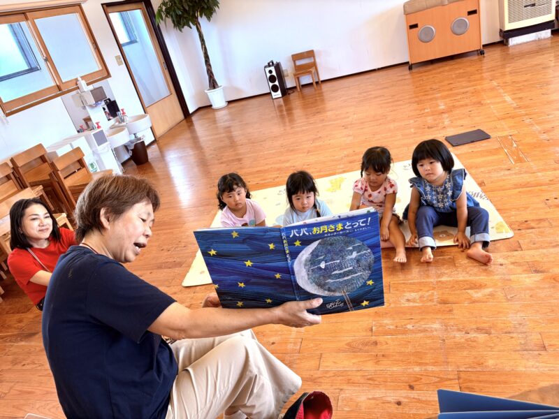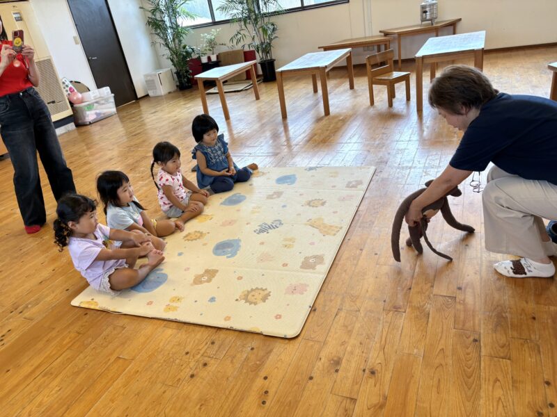 わらべ歌に合わせて声を出したり体を動かしたりしながら、楽しくお話し会に参加しました。心地よいリズムや絵本の世界に触れ、子どもたちの笑顔が広がりました。