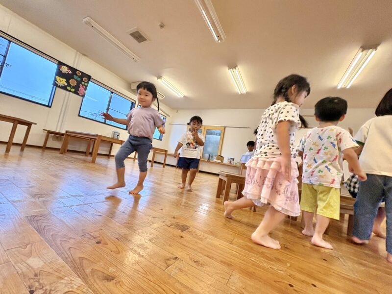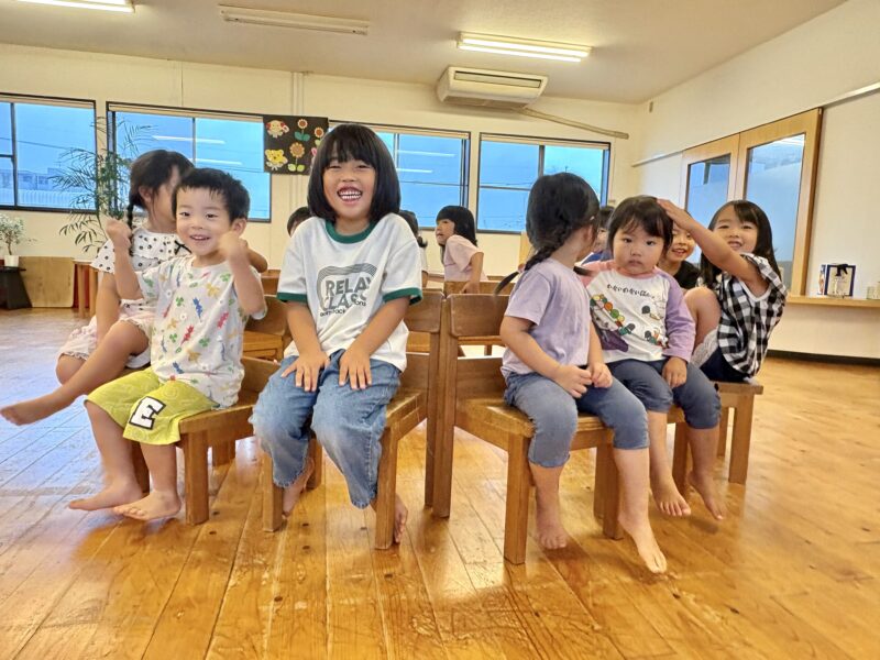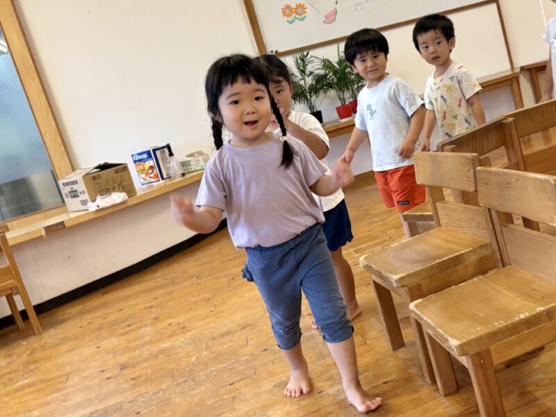 音楽に合わせてドキドキ、わくわく!椅子取りゲームでは、子どもたちの真剣な表情や、勝って喜ぶ姿、負けても友だちを応援する姿が見られました。