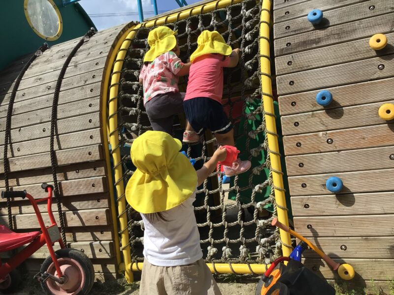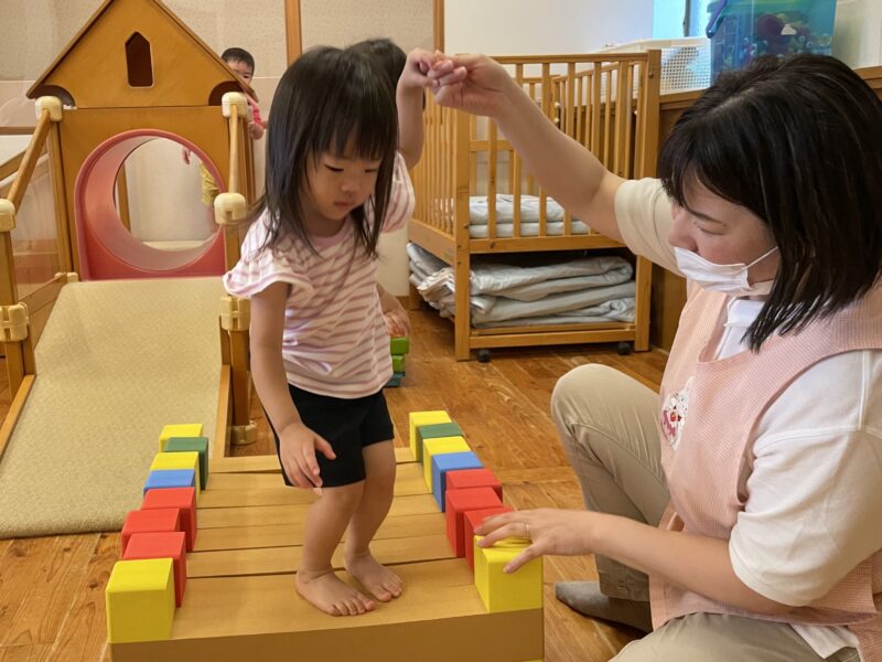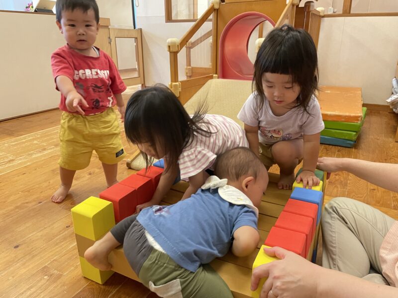 友だちと一緒に遊ぶ姿が増えてきました。競い合うように、同じ遊びを共有しながら楽しむ様子が見られます。