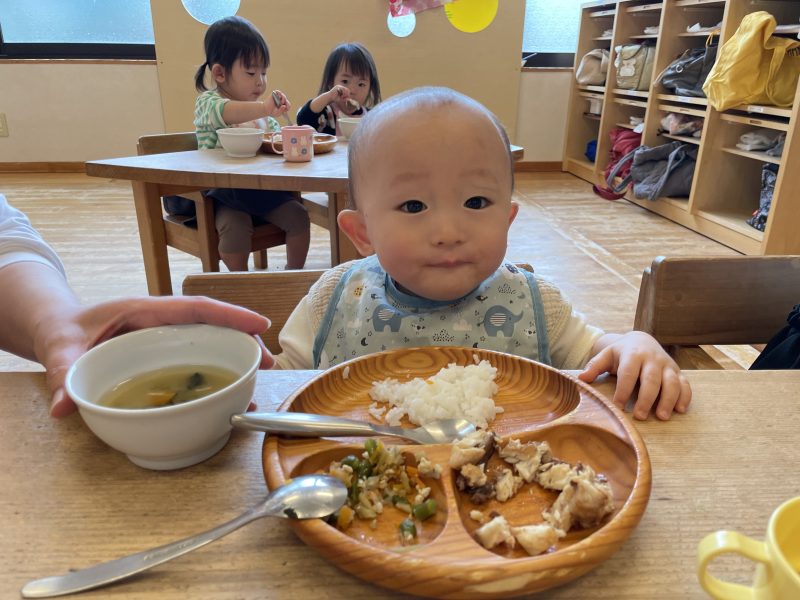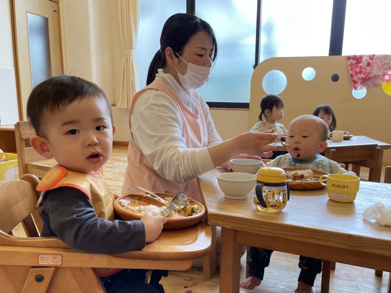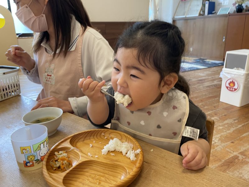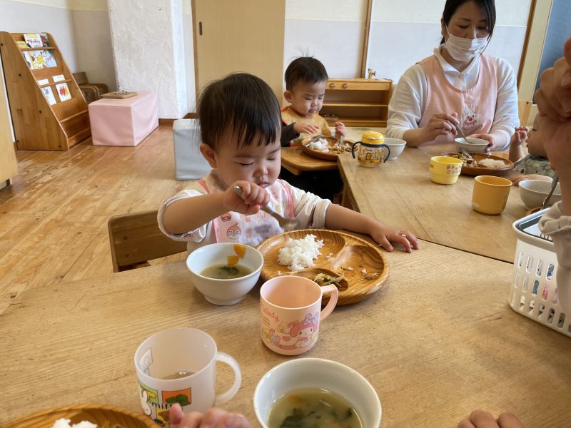 1日の中で一番静かな時間が、給食の時間です。ゆず組のお友だちは食べることが大好きで、「おかわり!」の声が毎日聞こえてきます。