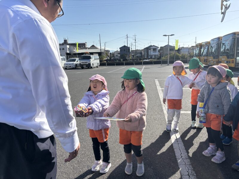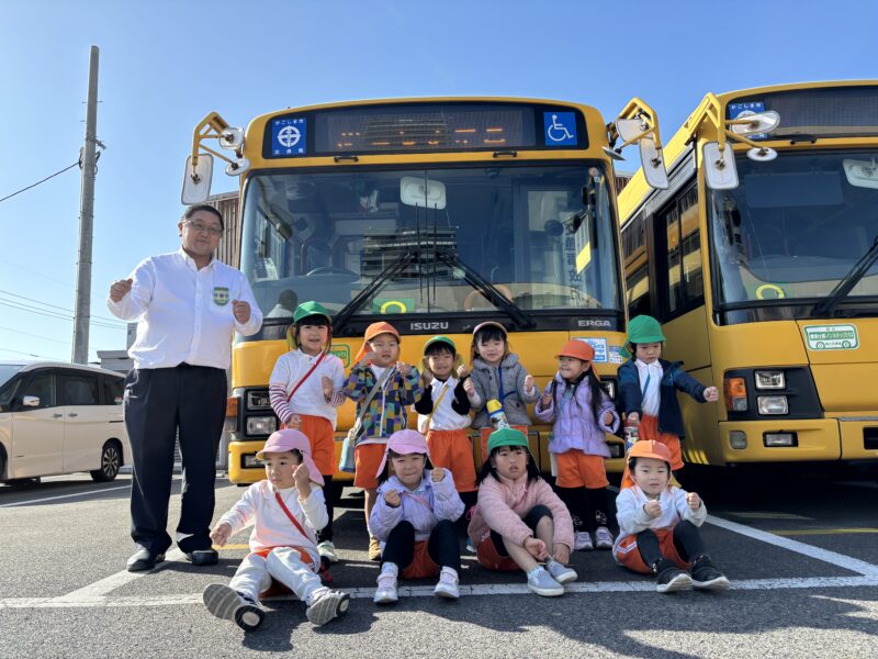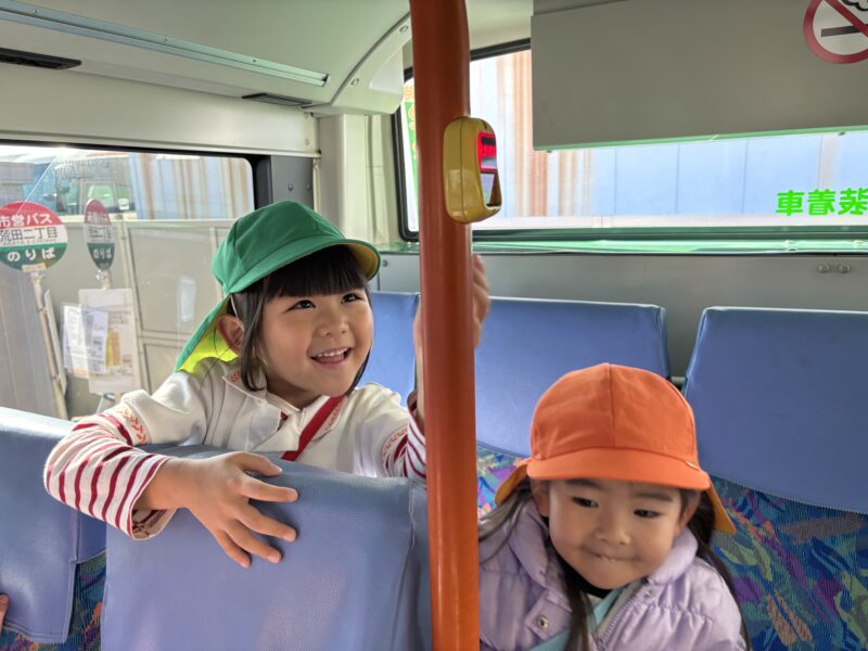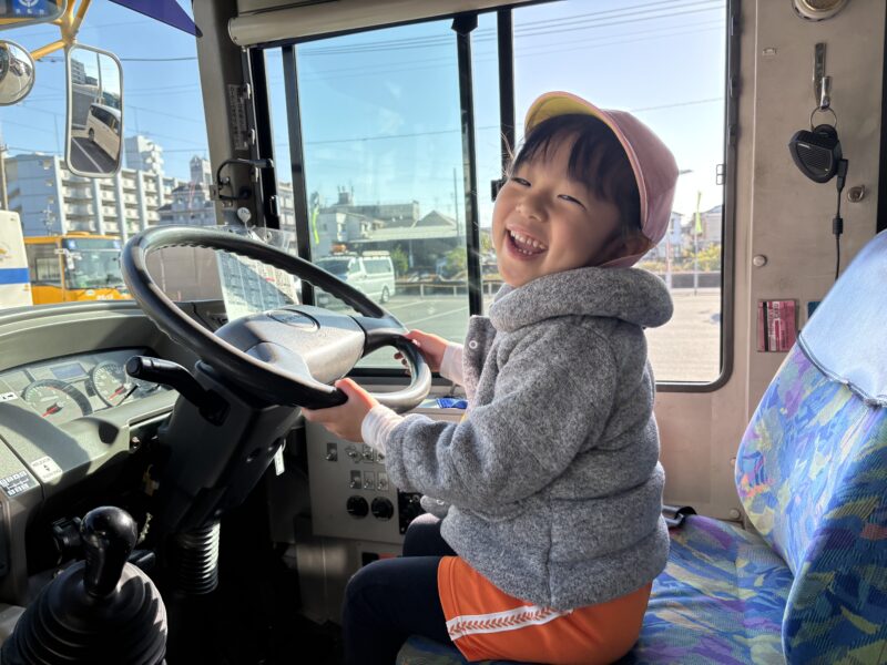 交通局では、バスに乗って運転席に座らせてもらったり、降車ボタンを押したりと、貴重な体験をさせていただきました。「これ何?」と、たくさんの機械やボタンに興味津々でした!
